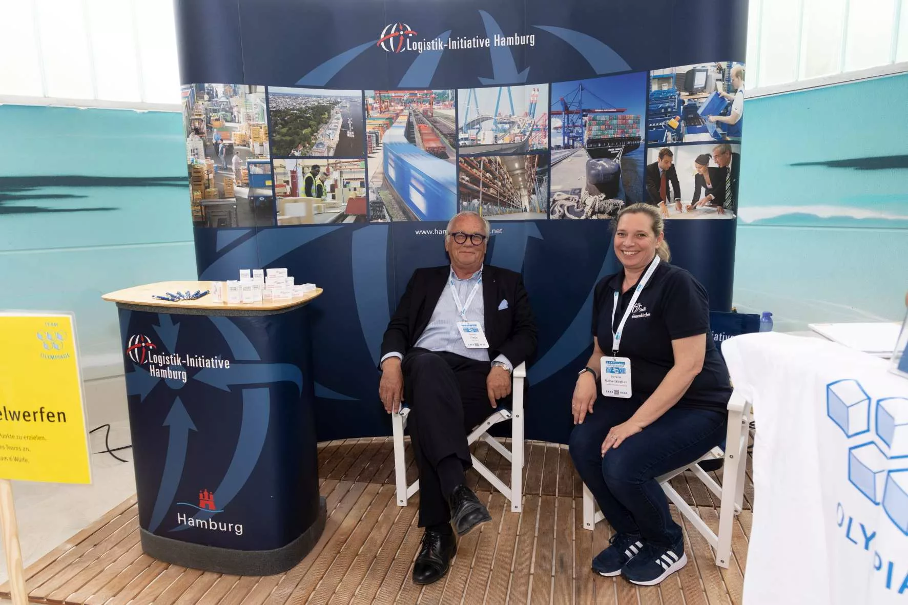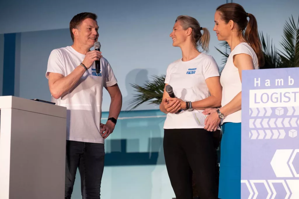 Für die Betreuung der Teams, die sich im Rahmen der 20. Hamburger Logistiktage an der Team-Olympiade beteiligen, konnten wir prominente Unterstützer gewinnen. Neben Britta Heidemann, Olympiasiegerin im Fechten, war auch der ehemalige Fußball-Nationalspieler und Europameister Thomas Helmer mit Begeisterung dabei.